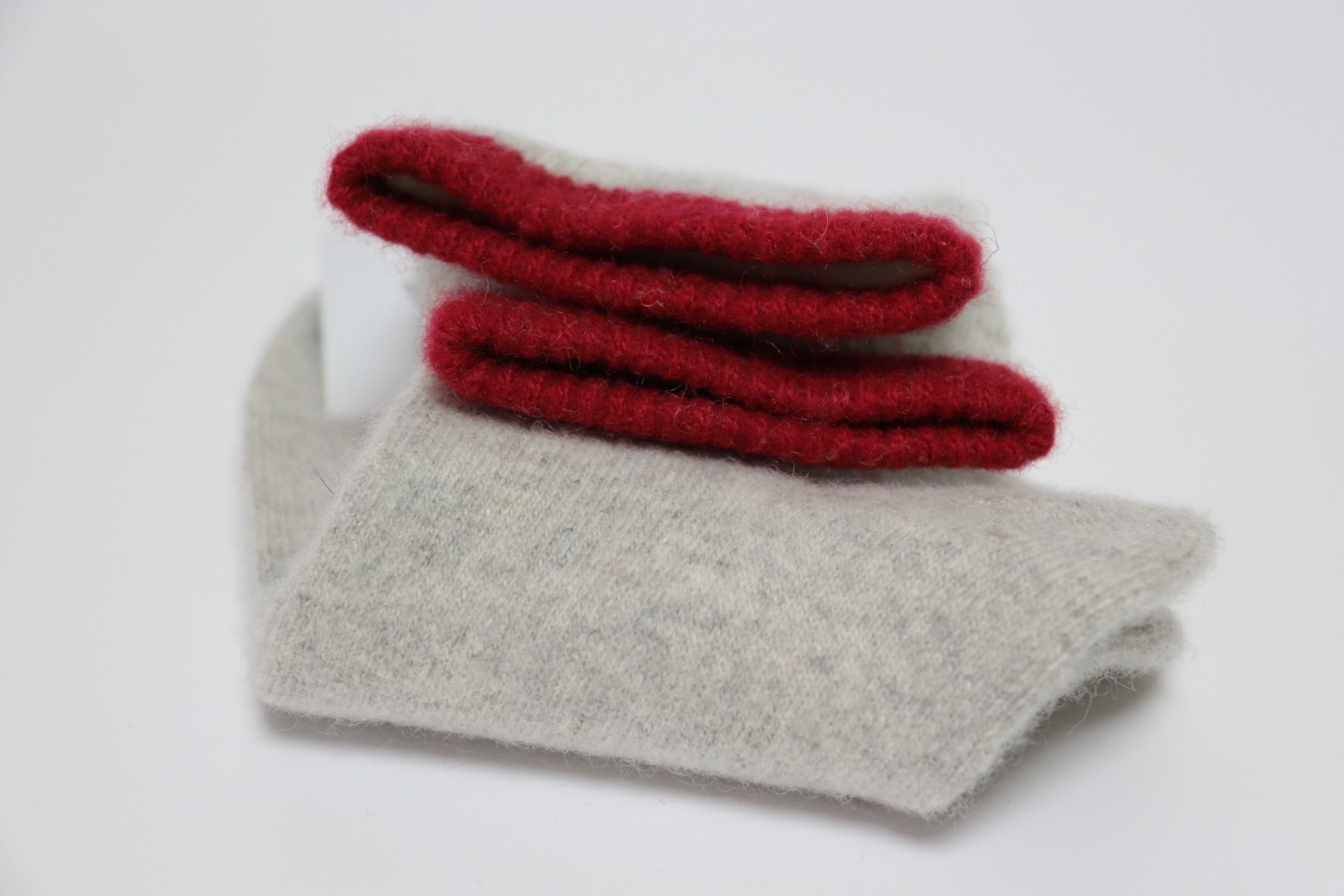 モンゴルウール薄手ソックス(生成り × 赤ライン)